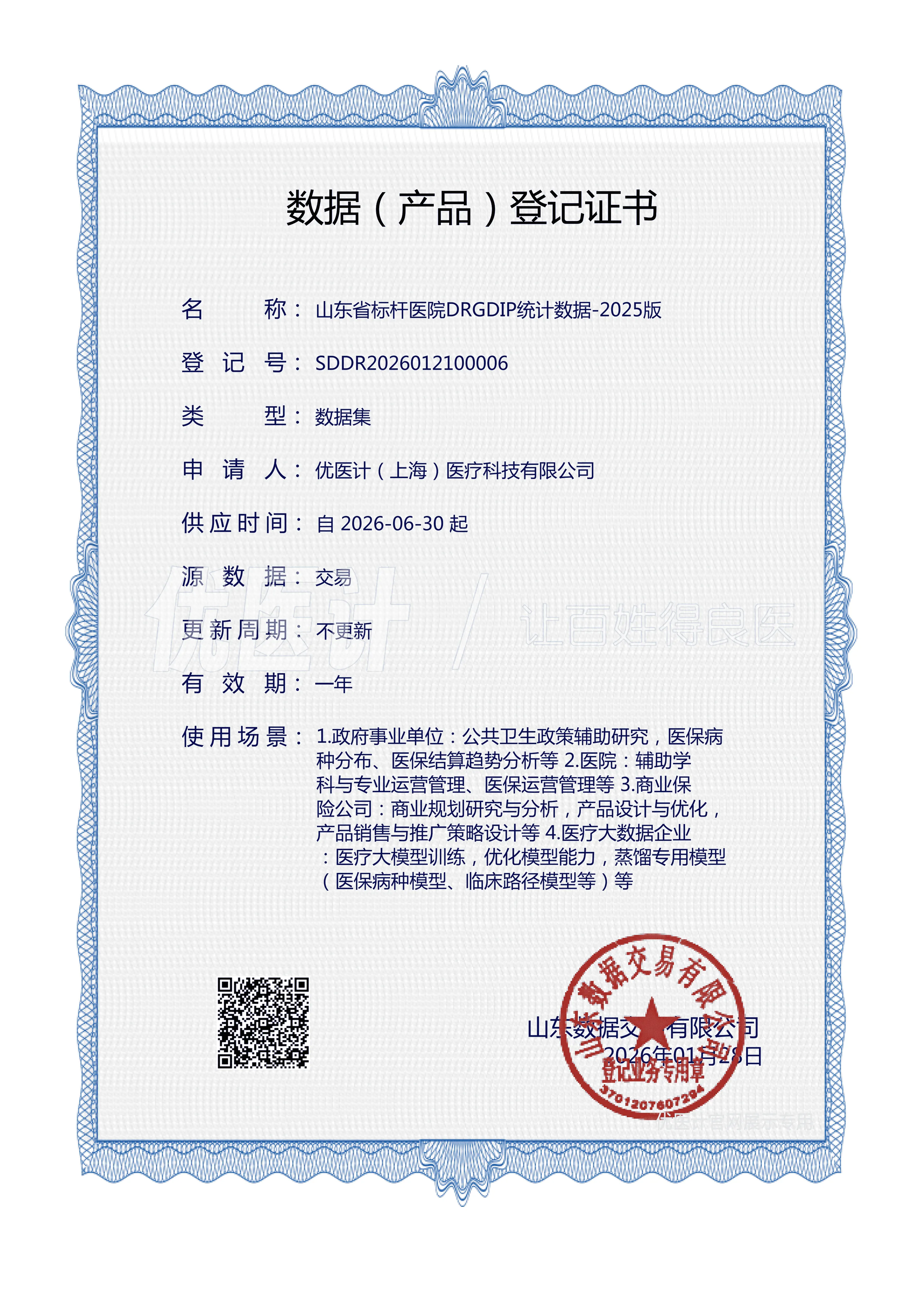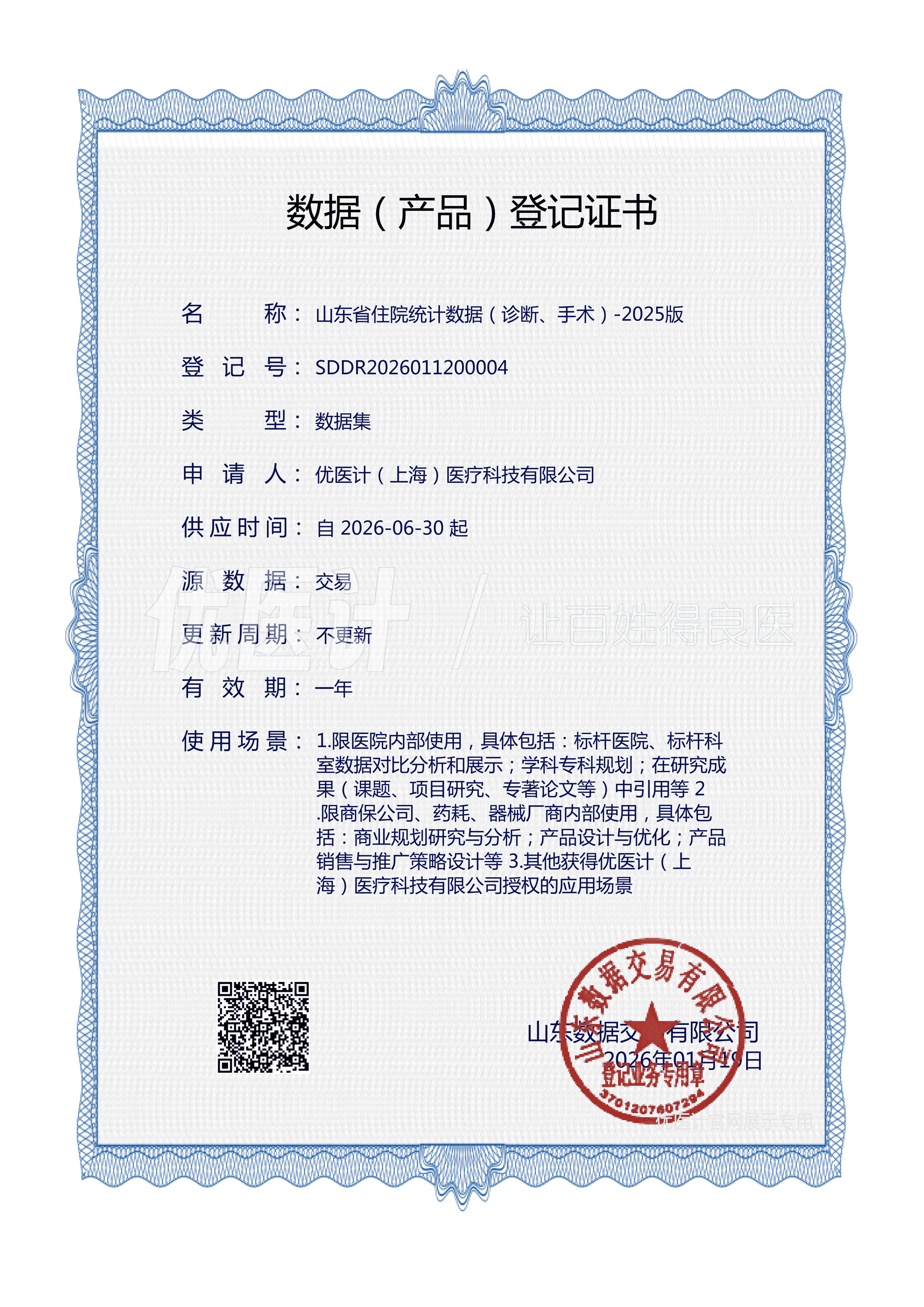 优医计(上海)医疗科技有限公司,深耕医疗数据与数字化服务领域,以真实、权威的数据和专业、安全的服务为基础,除面向广大医疗机构、科研院所、医疗相关企业(包含药、耗、保险、医学大数据等)提供真实世界高质量数据集外,还倾力于向医疗机构提供全方位的医疗数据运营服务(包括标杆数据对比分析,数据资产的合规化、代运营,数据产品开发、发布与承销等),在C端为普通大众提供可靠的就医参考与指导。